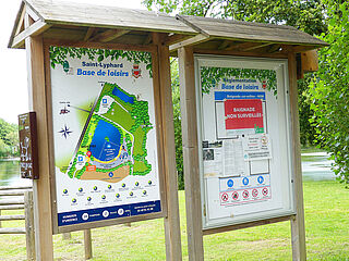 Vous trouverez l'emplacement de chaque équipement grâce aux panneaux situés aux entrées de la base de loisirs, n'hésitez pas à les consulter !