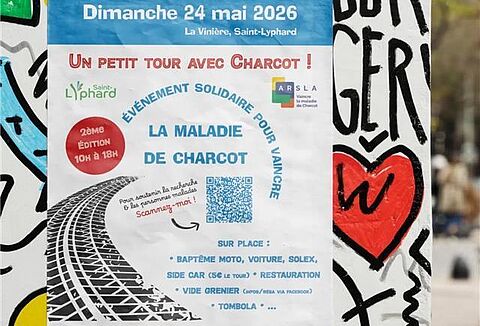 Le24mai Un petit tour avec Charcot Un petit tour avec Charcot : Évènement solidaire pour vaincre la maladie de Charcot. Sur place :…Du 10h00 à 17h00 La Vinière 44410 St lyphard - St lyphard Partager cette page FacebookTwitterGoogle +LinkedInViadeo