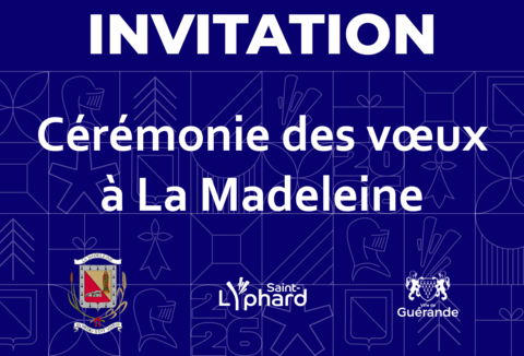 Le07janv. Cérémonie des vœux à la population à La Madeleine Les élus du Syndicat Intercommunal de La Madeleine vous souhaite une belle année 2026.à 19h00 Salle St-Joseph - Guérande Partager cette page FacebookTwitterGoogle +LinkedInViadeo