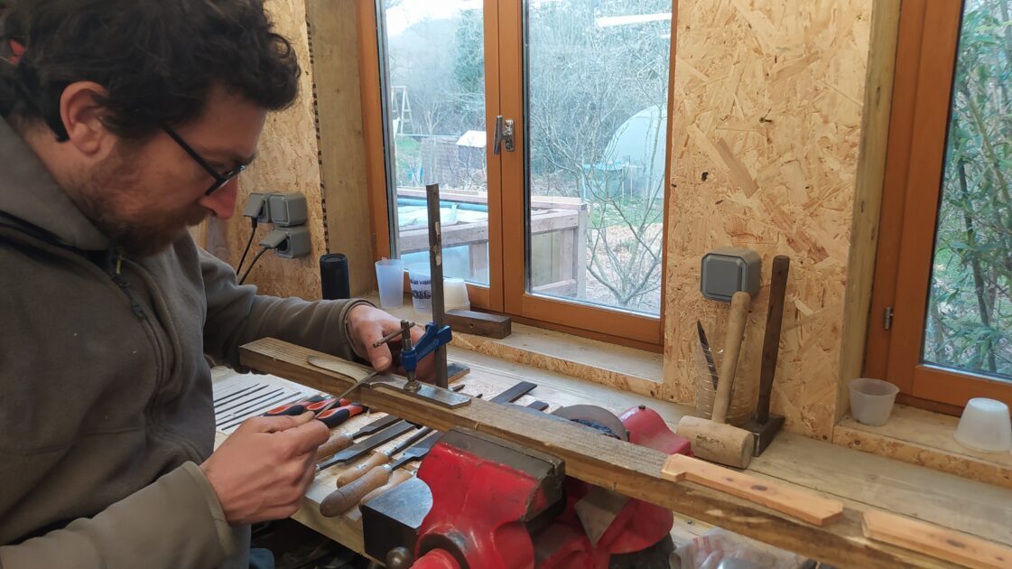 Assistez à la fabrication d’un couteau : forge de la lame, travail du cuir pour créer un étui, affûtage à la pierre à eau. Chaque geste raconte une histoire, celle des outils et des bois locaux, trésors oubliés de notre territoire.