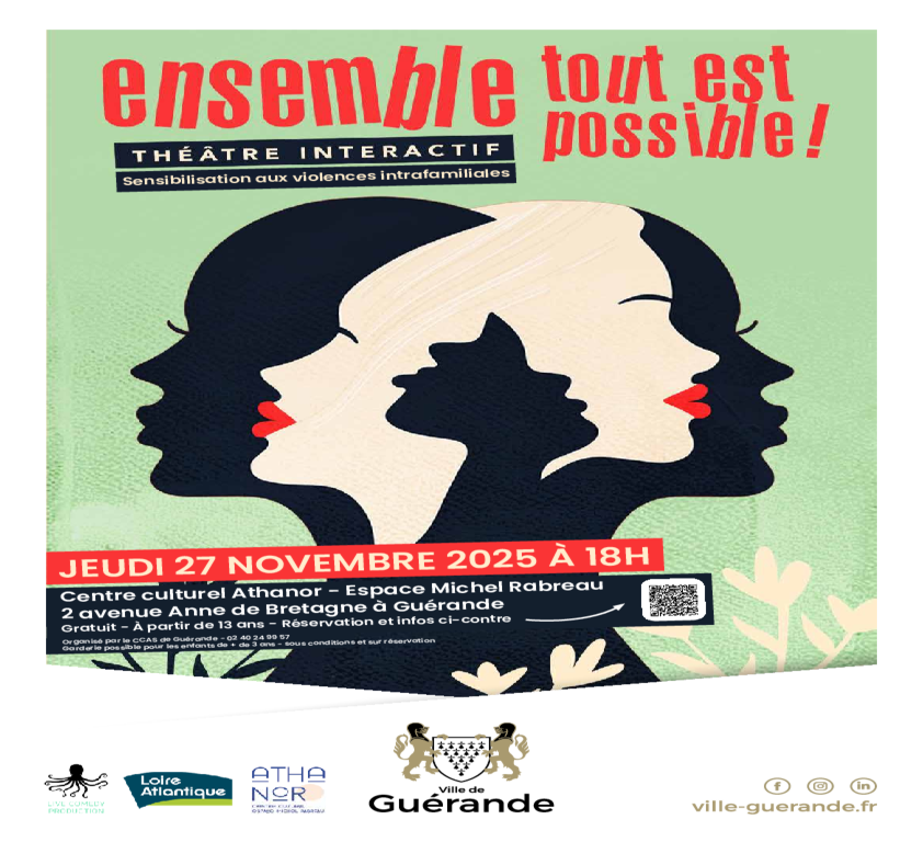 Le CCAS de Guérande propose une soirée de sensibilisation sur les violences conjugales et/ou intrafamiliales, avec ce spectacle interactif du Live comedy. Des associations seront présentes pour animer les échanges.