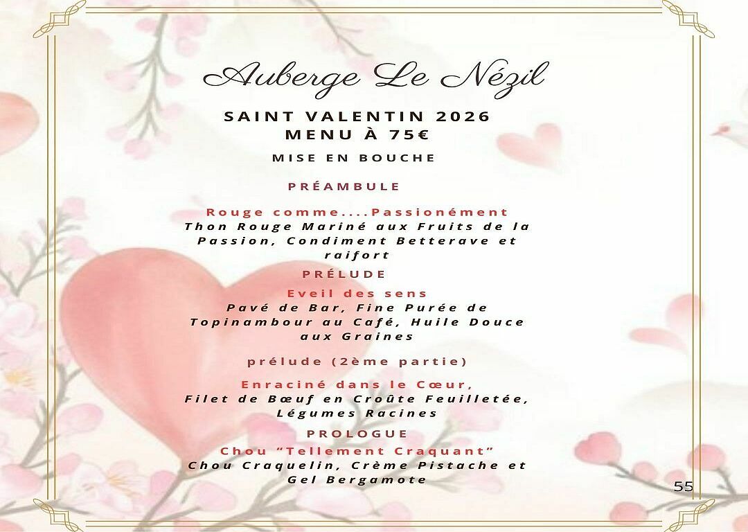Votre menu de la Saint-Valentin à l'Auberge Le Nezil